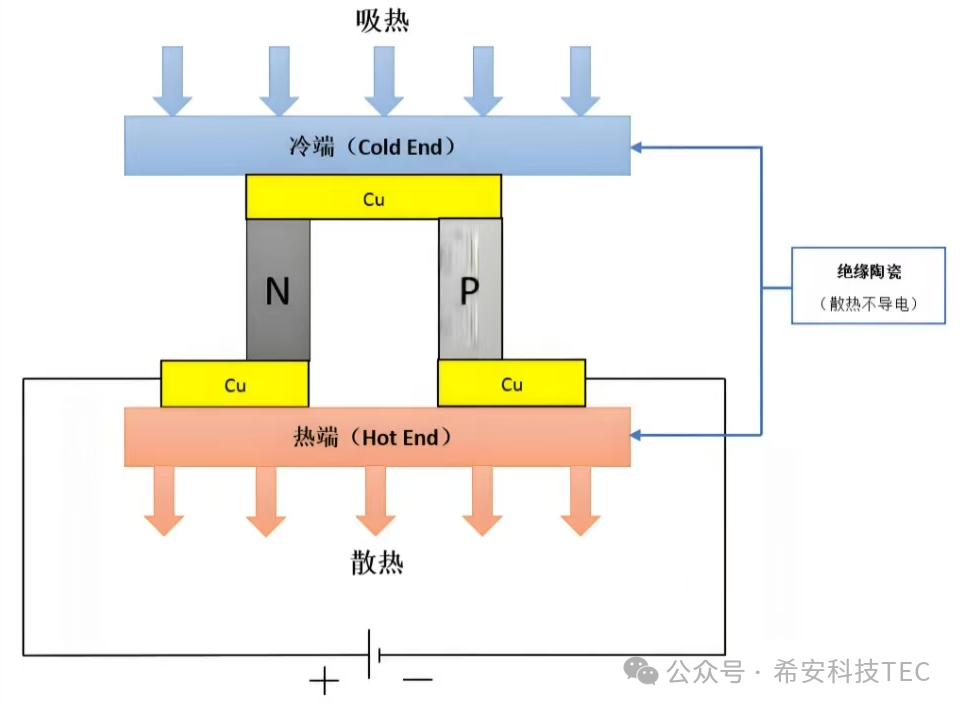 A: Коли струм проходить через ланцюг, що складається з двох різних провідників або напівпровідників, поглинання або виділення тепла відбуватиметься в точці контакту двох матеріалів через різні напрямки струму. Це процес електротермічного перетворення і процес, зворотний ефекту Зеєбека.